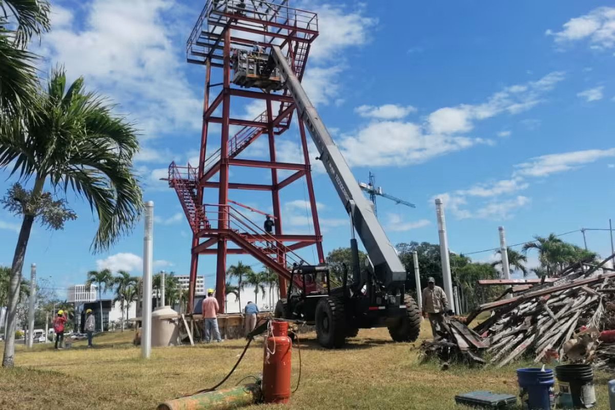 Workers involved in the monument’s renovation said the project has been active for three weeks, and when they arrived they found the tower in lamentable condition. The wood was rotten, the palm roofing was nearly gone, and steel beams and plates were completely corroded, eating away at the remaining healthy metal.