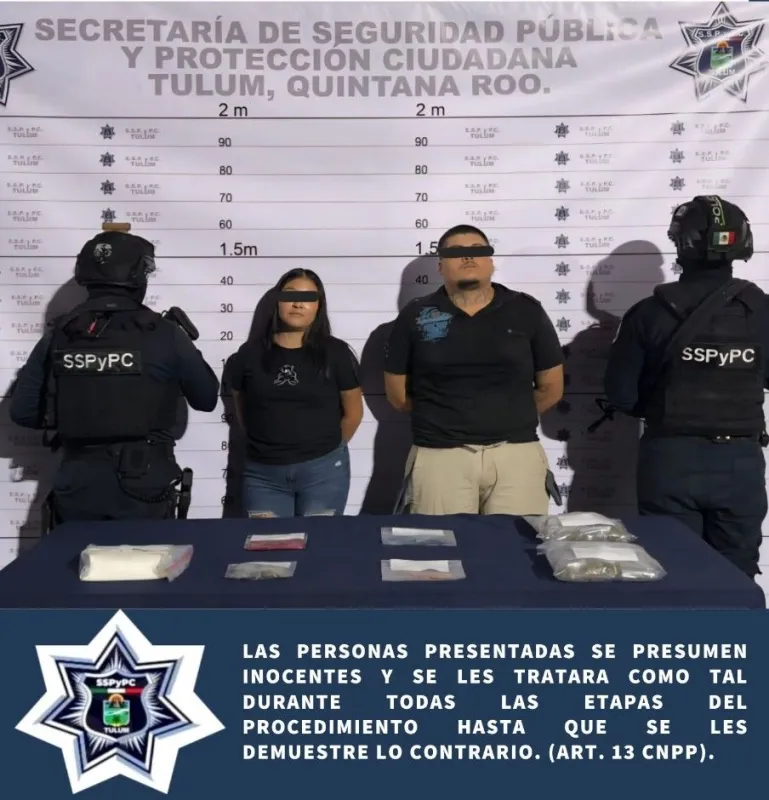Tulum, Quintana Roo — Elements of the Secretariat of Public Security and Citizen Protection have reported the arrest of two individuals allegedly linked to crimes against health. The incident occurred during the early hours of Friday.