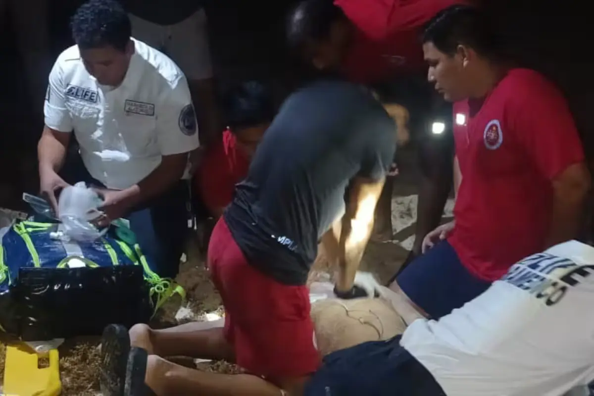Three lifeguards from the hotel zone fire station arrived to find a young man, approximately 21 years old, unconscious and without vital signs after being pulled from the water.