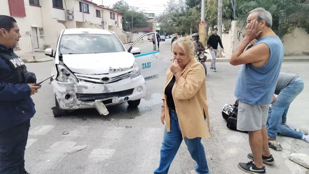 Playa del Carmen, Mexico — A collision between a motorcycle and a taxi at a central intersection injured one person and caused significant traffic disruptions on Monday morning.