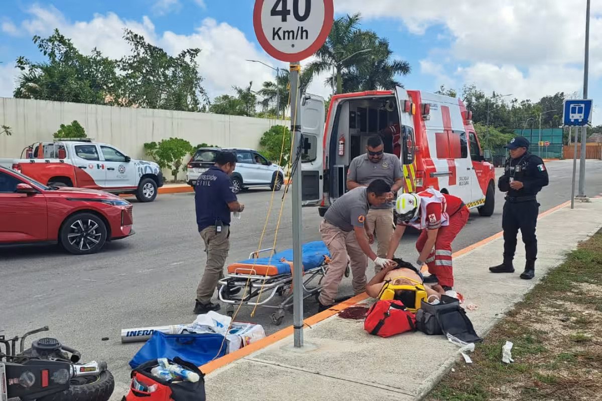 Tulum, Quintana Roo — A motorcyclist suffered severe head trauma and multiple life-threatening fractures after being struck by an SUV in Tulum’s Aldea Tulum neighborhood, requiring emergency airlift to a hospital in Playa del Carmen.