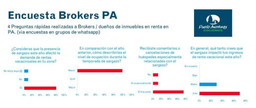 According to a survey, more than 80% of participants believe that in 2025, sargassum affected the demand for vacation rentals, for example, as they experienced cancellations. And, compared to 2024, 100% of respondents considered occupancy to be lower; 70% said it strongly impacted their economy, and the remaining 30% said the impact was moderate.