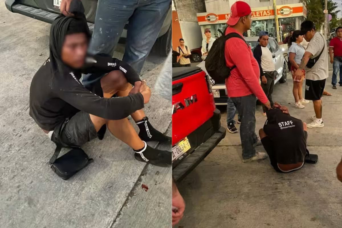 The incident occurred at the intersection of Avenida 45 and Calle 2 Bis in the Centro neighborhood, where locals recognized the individual as a suspected member of a group known as the “farderos de Cancún.” Authorities say this group has been linked to small-scale shoplifting operations targeting businesses throughout the region.