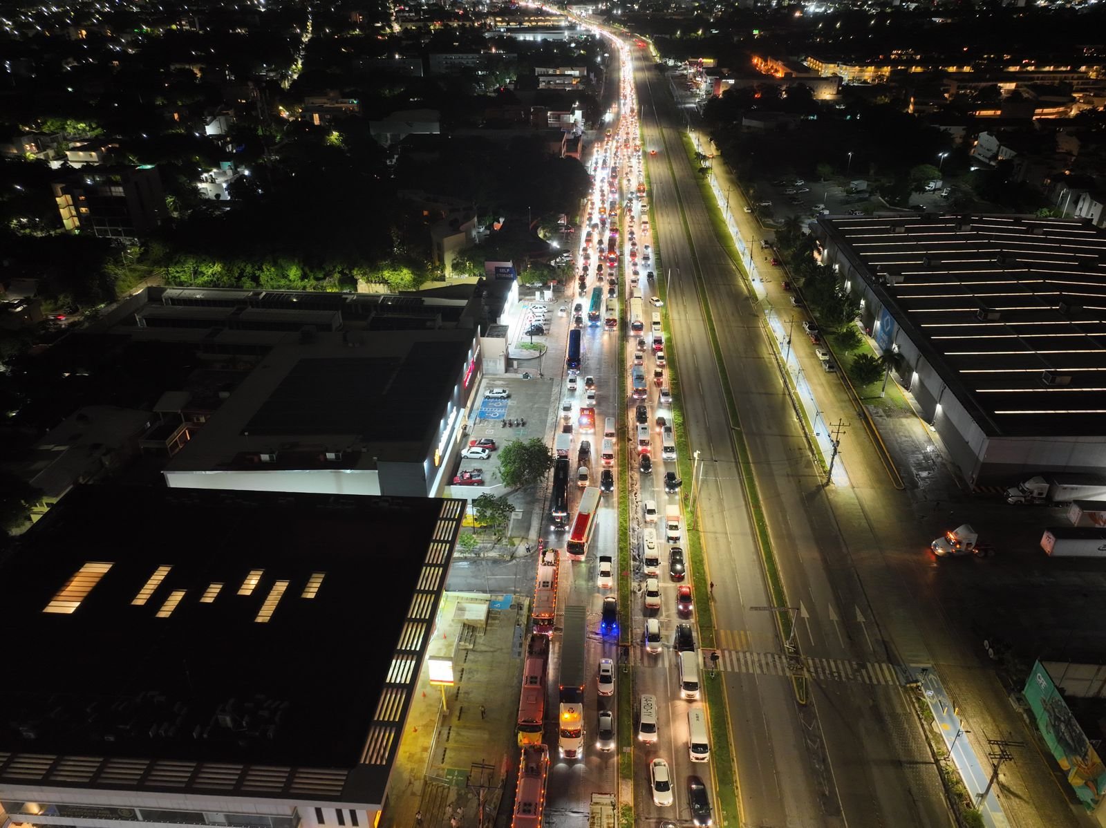 The blockage immediately began to generate long lines of motorists in all directions of the roadway, with queues currently exceeding one kilometer in length.