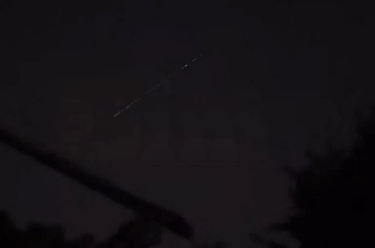 According to specialists, this type of sighting often coincides with the passage of communication satellite trains, which reflect sunlight while moving in low orbit, creating a visual effect that can be surprising for observers on the ground.