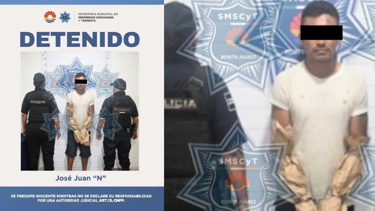 Cancún, Mexico — A robbery attempt at a small store in Cancún ended with a woman injured by a gunshot and the subsequent arrest of the alleged perpetrator. Elements of the Benito Juárez Municipal Secretariat of Citizen Security and Transit (SMSCyT) arrested José Juan “N”, 40, after he allegedly shot the victim in the Supermanzana 67 area during a preventative patrol.